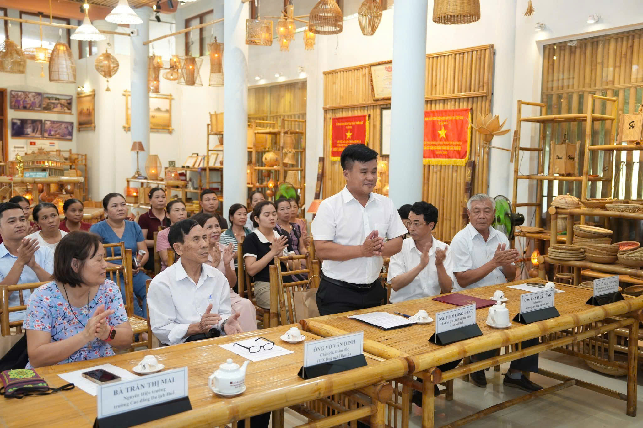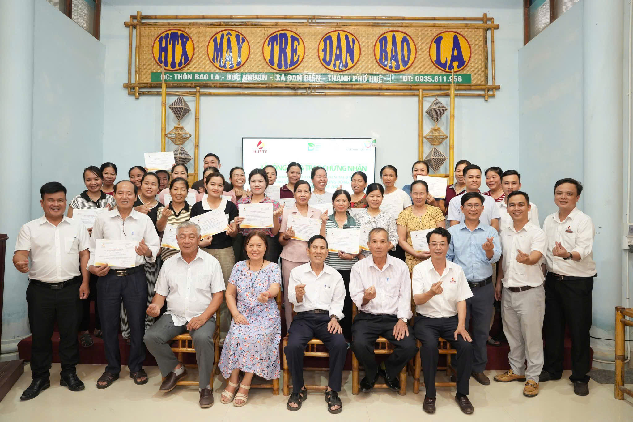 Tham dự buổi lễ có đại diện lãnh đạo địa phương, chuyên gia dự án, lãnh đạo Hợp tác xã Mây tre đan Bao La, lãnh đạo Trường Cao đẳng Du lịch Huế cùng đông đảo học viên là người dân địa phương và thành viên HTX.
