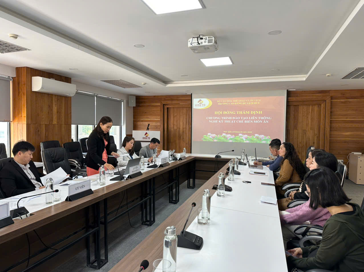 Sáng ngày 13/01/2026, Trường Cao đẳng Du lịch Huế đã tổ chức họp Hội đồng thẩm định Chương trình đào tạo liên thông nghề Kỹ thuật chế biến món ăn. Với tinh thần làm việc nghiêm túc, khách quan và khoa học, 100% thành viên Hội đồng đã thống nhất thông qua các nội dung trong chương trình liên thông.