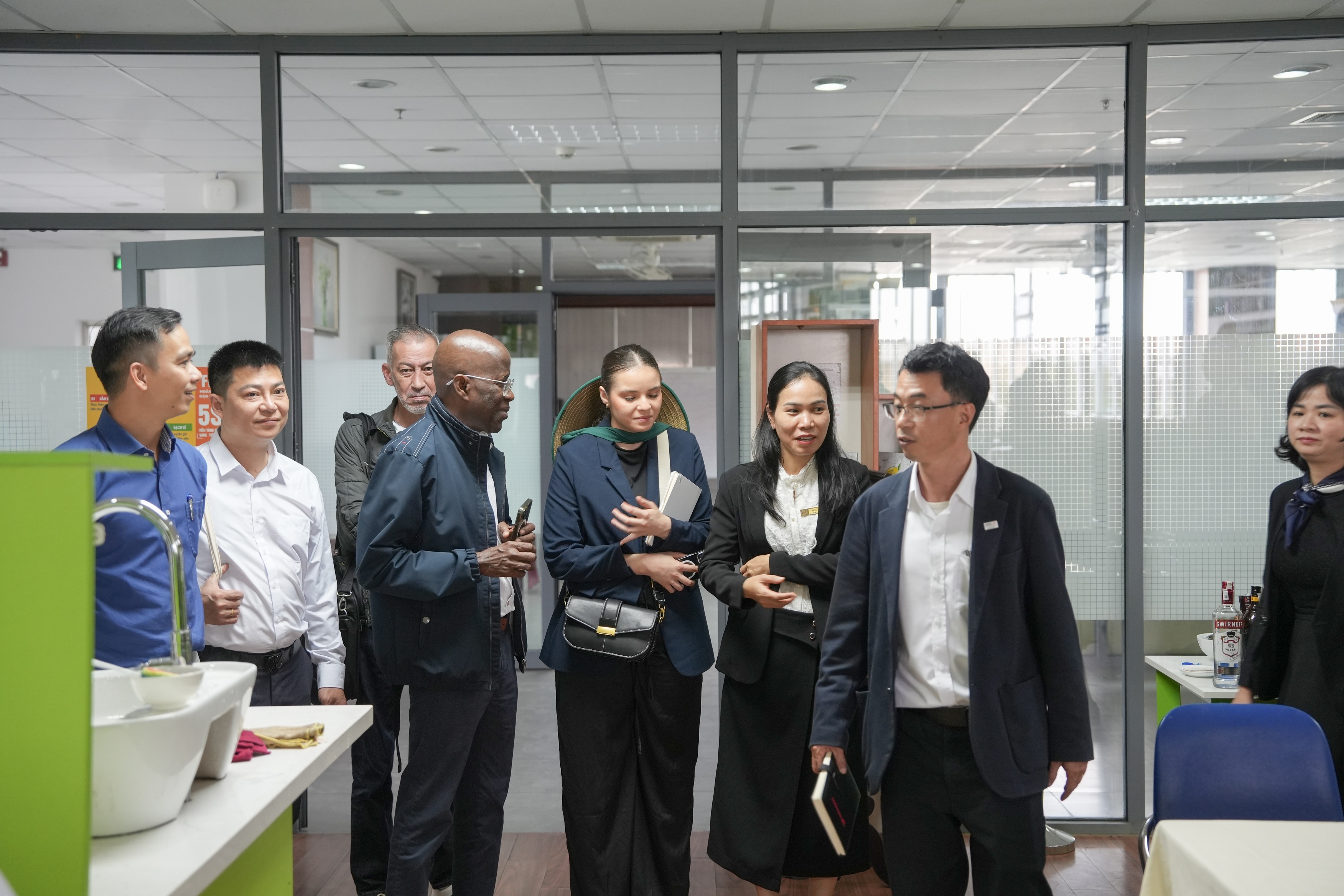 Sau buổi họp, Đoàn đại biểu thành phố Cergy đã tham quan cơ sở đào tạo của trường, nơi sinh viên được rèn luyện kỹ năng nghề trong môi trường thực hành chuyên nghiệp. Chuyến tham quan giúp đoàn hiểu rõ hơn về năng lực đào tạo của Nhà trường trong các lĩnh vực khách sạn, nhà hàng, lữ hành và các hoạt động du lịch trải nghiệm.
