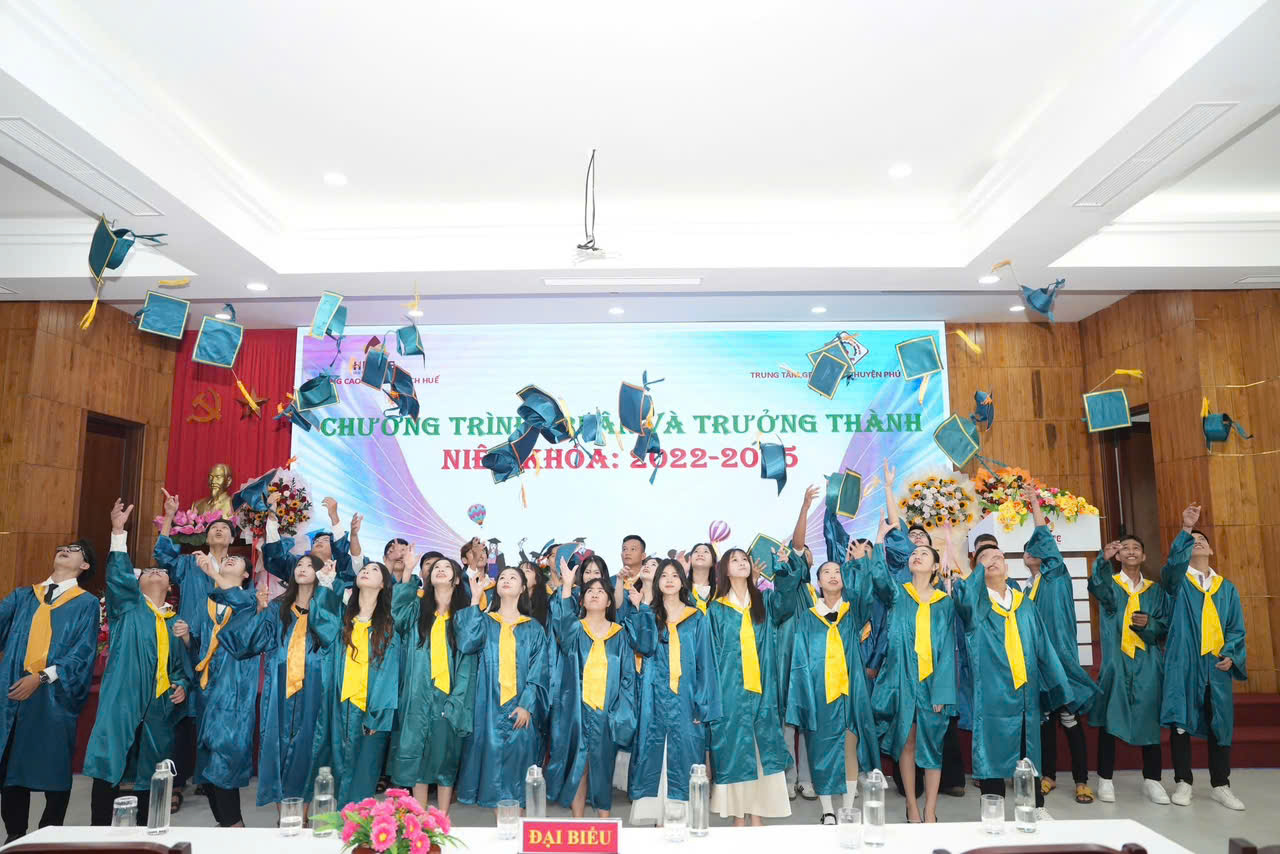 Ngày 14/6/2025, Trường Cao đẳng Du lịch Huế phối hợp cùng Trung tâm Giáo dục nghề nghiệp – Giáo dục thường xuyên (GDNN–GDTX) huyện Phú Vang tổ chức Lễ Tri ân và Trưởng thành dành cho học sinh lớp 12 niên khóa 2022-2025 tại khuôn viên Nhà trường đầy trang trọng và xúc động. Buổi Lễ là dịp để các em học sinh thể hiện lòng biết ơn sâu sắc tới thầy cô, cha mẹ và chính thức đánh dấu bước chuyển mình quan trọng trên hành trình trưởng thành.