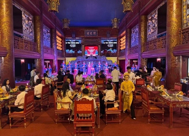 Buổi tiệc được phục vụ cùng phần trình diễn Nhã nhạc Cung đình Huế – Di sản văn hóa phi vật thể thế giới, cùng các tiết mục múa cung đình truyền thống. Không đơn thuần là một dịch vụ, tiệc cung đình tại Đại Nội Huế là sự kết nối giữa quá khứ và hiện tại, góp phần bảo tồn và tôn vinh giá trị di sản văn hóa Cố đô.